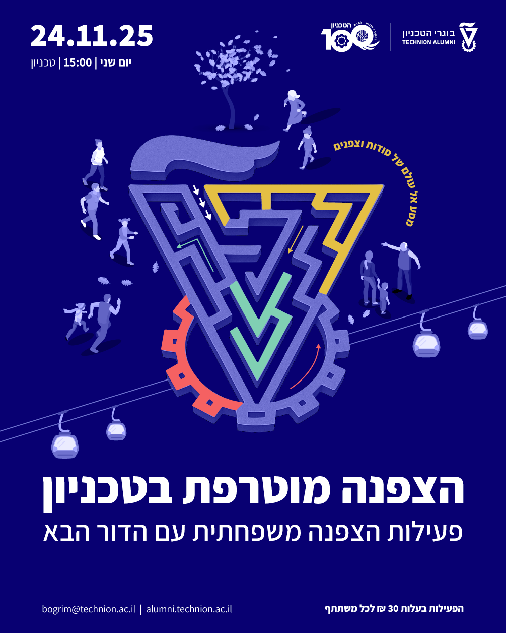 - אזל מלאי הכרטיסים? זקוקים לנגישות? פנו אלינו: alumni.event@technion.ac.il