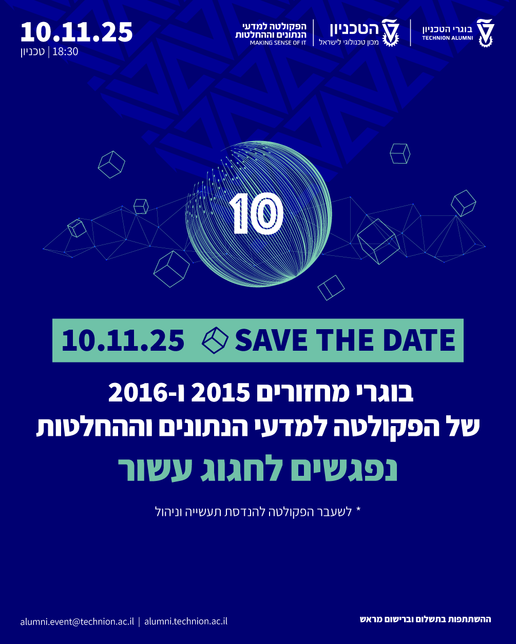 כנס חגיגות העשור למחזורי 2015 ו-2016 של הפקולטה למדעי הנתונים וההחלטות.