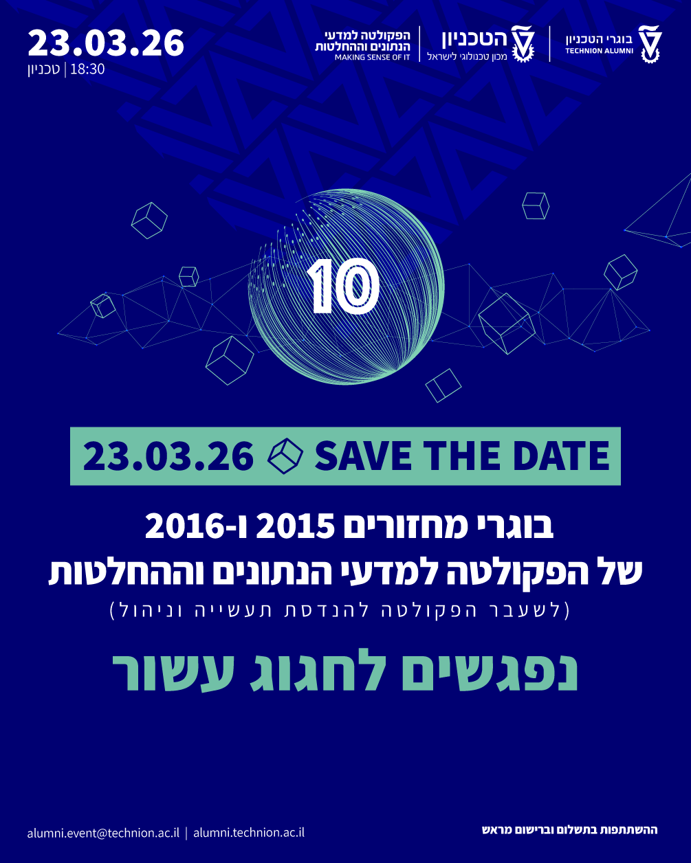 כנס חגיגות העשור למחזורי 2015 ו-2016 של הפקולטה למדעי הנתונים וההחלטות.